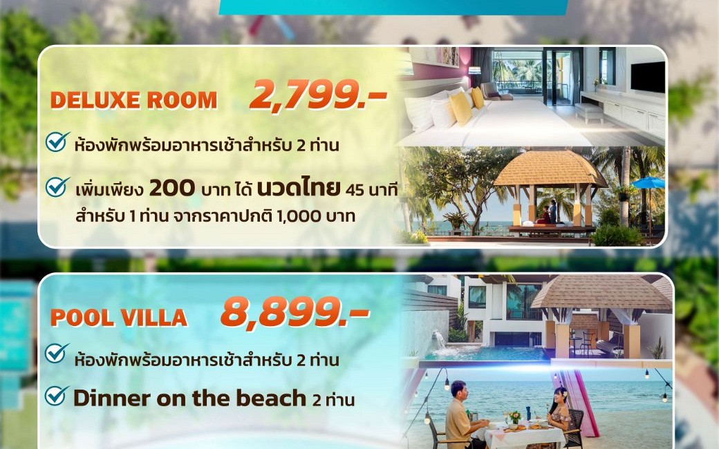 • Add just 200 Baht for a 45-minute Thai massage (regular price 1,000 Baht)